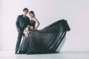 まずは、洋装をお召しになってのスタジオ撮影がスタートしました!黒のタキシードとお花柄が細やかに散りばめられた黒のドレスで統一されて、全体をパシャリˊ˗