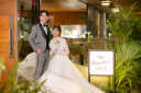 レストランルークウィズスカイラウンジにて。2着目のドレスへお色直しを行い、221mの高層階レストランで撮影です。