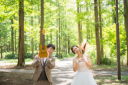 色鮮やかな夏の緑の中に和装姿のおふたりが素敵に映えます。