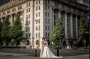 日本庭園の中には朱色の橋・太鼓橋が架かっています。和装のおふたりを番傘のアイテムと一緒に惹きたてるロケーションのひとつ。