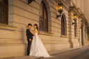 縦抱っこでのまるでプリンセスの様なロマンチックなショット。ライトアップされた東京駅が引き立てます!