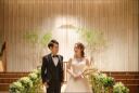 自然素材に包まれたデザイナーズチャペルで。「過去・現在・未来」を表現した3本の連なった十字架がポイントに。シンプルだけどで上質な雰囲気が伝わる1枚。