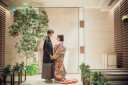 日本庭園の中にタキシード&ドレス姿も素敵ですね。庭園ロケーションでは洋装のご案内も承っておりますのでお気軽にご相談くださいませ!