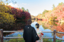 チャペルが佇む中庭でご家族様との4ショット。秋ならではの景色が広がります。葉がオレンジや黄色に色づき美しいですね。