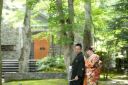 ご新郎様がエスコートされている様子をお撮りしました。背景の自然も緑の時期ならではのお写真です!