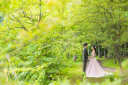 こもれびあふれるなか後ろからバッグハグ!きゅんとくる可愛いお写真です。
