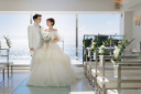チャペルの天窓から注ぐ光がふたりを包み込みます。海に続くような開放的な空間で交わす視線が美しく、晴れ渡る空が未来への希望を静かに映しています。