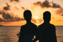 水平線を眺めるお二人。まっすぐとしていて美しいです。