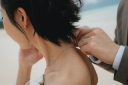 宮古ブルーの海をバックにハグショット、とても素敵ですね^^