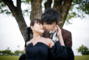 和傘に包まれたふたりの世界。穏やかな春の日差しとともに。
