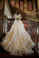 ドレスの裾をそっと持つ優しさに、ふたりの絆がにじむ1枚です♡