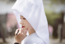 柔らかな光が映す、白無垢と花飾りの凛とした美しさ。
