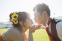 青空の下、そっと額を寄せ合うふたり。優しい風の中で交わす微笑みが、これからの人生を共に歩む決意を静かに語る一枚です。