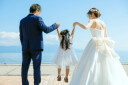 今度はウェディングドレスに着替えて桜島をバックに撮影!振り返る瞬間の自然な笑顔が素敵ですよね♪