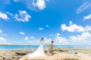 目の前に広がる透明な青い海にお二人の白い衣装がとっても映えます!