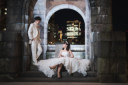 和装の撮影の後は、サロンでお色直しをして夜の東京駅での撮影。華雅苑ではプラン内料金で駅舎バック・和田倉門のガゼボ・明治安田生命ビルの建物での撮影をします。
