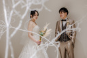 しっとりと決めたショットから始まるウェディングドレス&タキシードショット