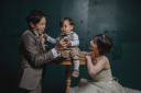 シンプル背景にあえてソファのみで余白多めの撮影に。