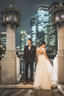 こんなショットもいただきました。ドレスもタキシードもシンプル背景に素敵に映えています