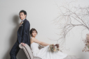 白背景に装飾をプラスして大人っぽな撮影♪スタジオの装飾は無料でお使いいただけるものが多いですよ