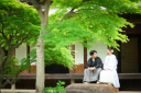番傘を持って、自然におしゃべりしている雰囲気で♪東勝寺も緑が多いロケ地です!