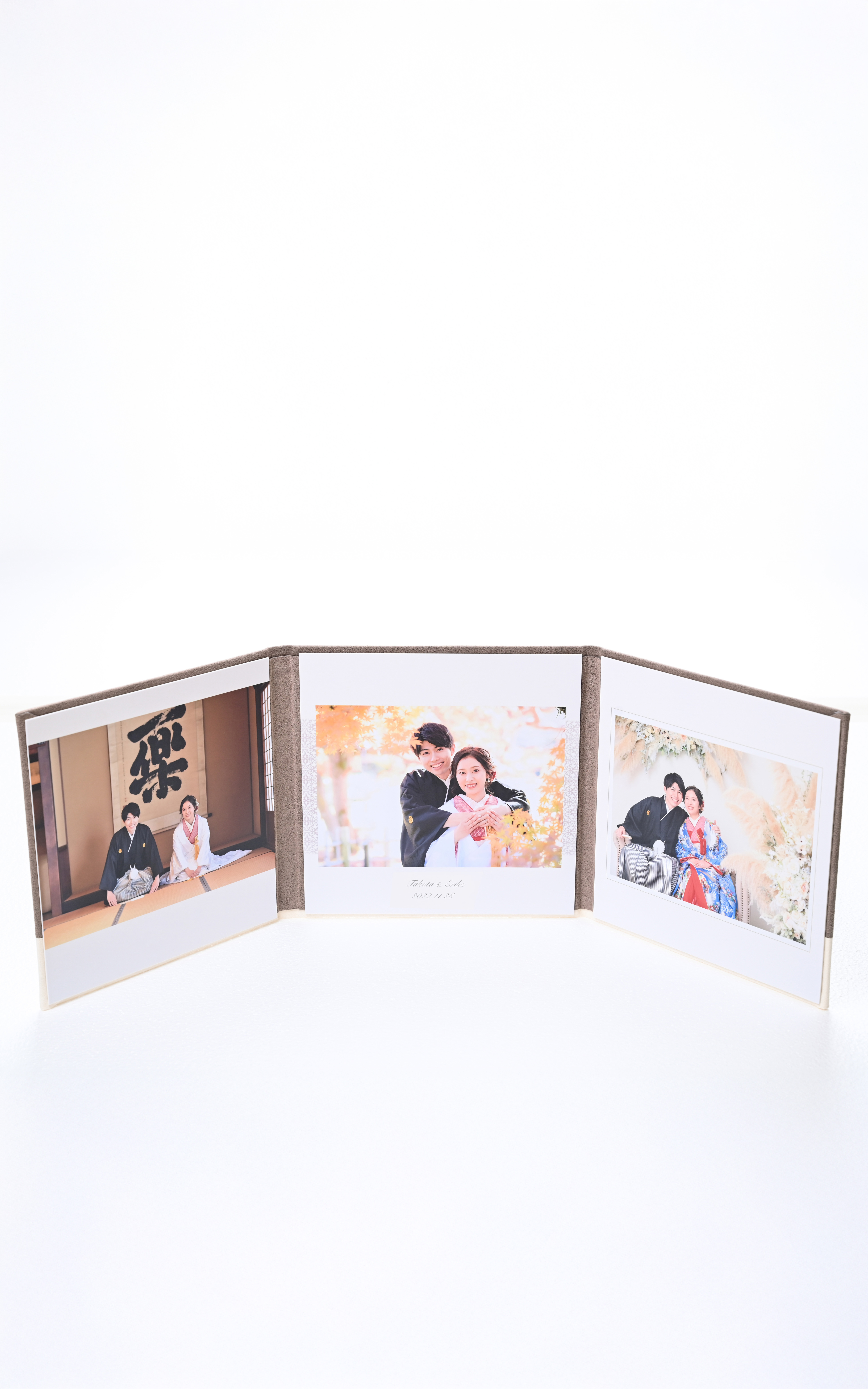 3面アルバムや25カットアルバムなど、当店では式場さんと同じクオリティーでのアルバム作成が可能です。大切な記念写真をきちんとした形で残したい方が大変増えております。ご希望の方はご相談くださいませ。