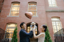 芝生エリアではよりお二人らしい笑顔あふれる撮影でカメラマンも一緒に大暴れ