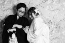 お二人にベールの中に入っていただきましたおでこを合わせるポーズでシックなイメージを