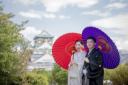 本日はナイトロケーション撮影なので夕方から撮影スタート♪ お二人ともスタジオでの衣装から一変!ウエディングドレスとブラウンのタキシードにお着替えしました。