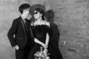 フラワースタジオの茶壁で撮影!真剣な表情で遠くを見つめるお2人に魅了されます❁