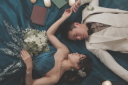 向かい合って二人でブーケを持っていただいて見つめあっている感じで...