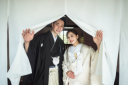 暖簾からの覗き見ショットは自然と距離が近くなりお二人の笑顔がとても魅力的な一枚です。