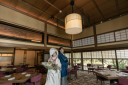 新婦様の後ろには飾り戸。白無垢が大変似合っており表情も素敵です。和の雰囲気の良さが存分に感じられる一枚となりました。