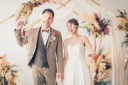 お子様と一緒にフォーマル写真♪ドライフラワーの背景でカジュアルな印象に。