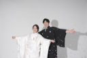 お二人のお衣装の組み合わせが、シンプルな背景に映えていてとても素敵です