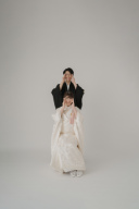 和装は雰囲気をガラリと変えて屋内庭園スタジオで!お子様も新郎様とお揃いの紋付き姿に着替えてくださいました!!