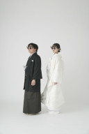 当店では撮影小物を自由にお持ち込みいただけます!ブーケをお持ち込みいただいたお二人。白無垢に淡い色のブーケが映えますね!!
