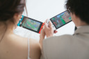 紅葉を背景におふたりお顔をぎゅっとくっつけてカメラ目線!