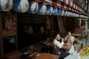 お店で一息。お二人はビールで乾杯してました!撮影の休憩時間。
