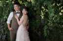 縁側の柔らかな光の中を、手を取り合って歩くお二人。未来へ向かう一歩一歩が、お互いへの優しい眼差しに込められています。