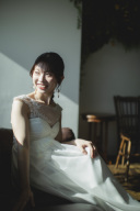 結婚式の招待状などにお選びいただくことの多い正座のポーズ。屋内庭園なら貸切スタジオで撮影可能です!