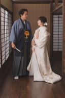 ピンク色の色打掛とチャコールの紋付がとってもお二人にお似合い♪