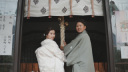 海風が冷えてきた時間帯さりげない新郎様の気遣いカット!大切な人への素敵な気持ちがいっぱいですね!