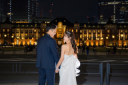 おふたりの向かい合っている背景には、大都市の夜景も一緒に。少し遅いお時間でも平日はビルから光がもれて水面に反射した幻想的な1枚が撮影できます。