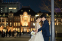 皇居周辺の撮影後は、東京駅・丸の内駅舎前へ。暖かい光につつまれた駅舎を背景に撮影を進行していきます◎