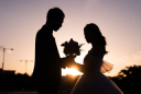 夕空の下で、ロマンティックな雰囲気に。シルエットは美しく、これから始まるフォトウェディングがより楽しみに。