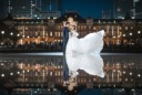 3ロケーション目は東京駅の駅舎前にて。街灯の下で寄り添うお二人がロマンチックです。駅舎のライトが海外みたいで映画のワンシーンのようです!