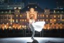 オレンジ色の暖かい光にライトアップされた東京駅・丸の内駅舎を背景に撮影を進めていきます!