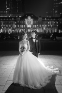 同じ画角ではありますがお次はお二人の表情にフォーカスしたお写真にいたしました。見つめ合うおふたりを東京タワーが煌びやかに照らしてくれています