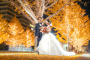 イルミネーションをバックにお二人の全身ショットを撮ると素敵なお写真になりますよね!お二人仲良く決めた土エス・タキシード姿を残しましょう♪